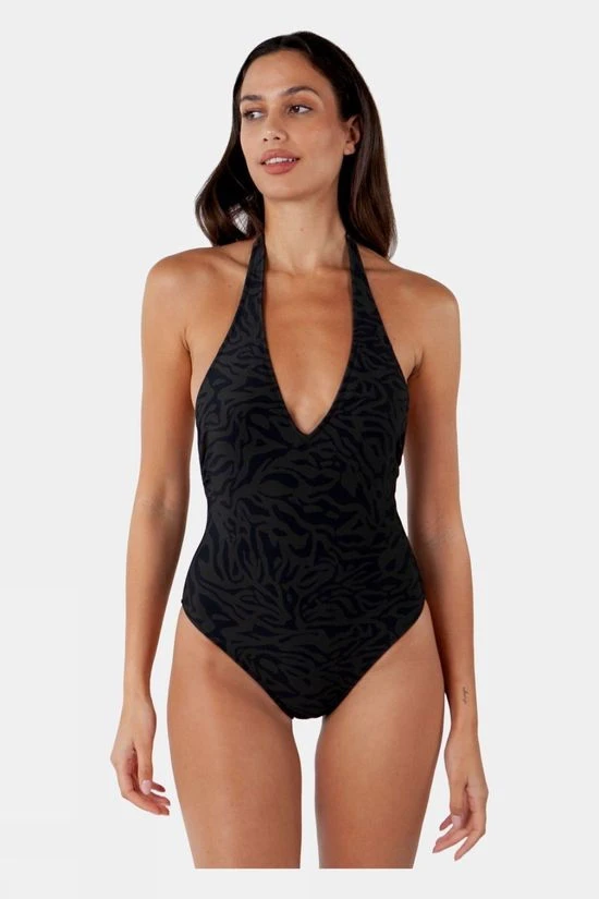 The Women’s Sula Halter is a one Piece swimsuit featuring high cut leg openings, a low V-neckline and cheeky coverage. The fixed soft chest paddings provide extra coverage while the adjustable neck straps allows a perfect adjustment to your morphology. A full lining and added stretch ensure comfortable feel.