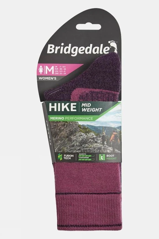 Designed for all year round trekking and backpacking, the women’s WoolFusion Midweight Merino Endurance sock has a unique Bridgedale construction that ensures your feet remain dry, warm and comfortable.