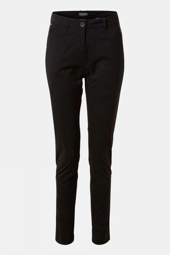 Step up to the trail this season in these marvellously light yet reliably tough walking trousers from Craghoppers. The Womens Kiwi Pro Active Trouser have a pared-back stretch construction that offers complete freedom of movement, with built-in UV protection and a splashproof finish. The sleek styling incorporates three discreet pockets and a fixed waist.