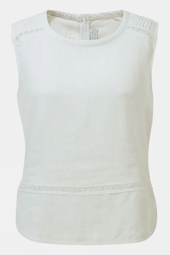 The sleeveless NosiBotanical Bonita Vest Top from Craghoppers was made for the summer; with relaxed linen and cotton construction, lace trim and pintuck details and a plant-derived NosiBotanical anti-insect treatment to guard against bites and stings.