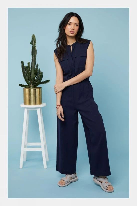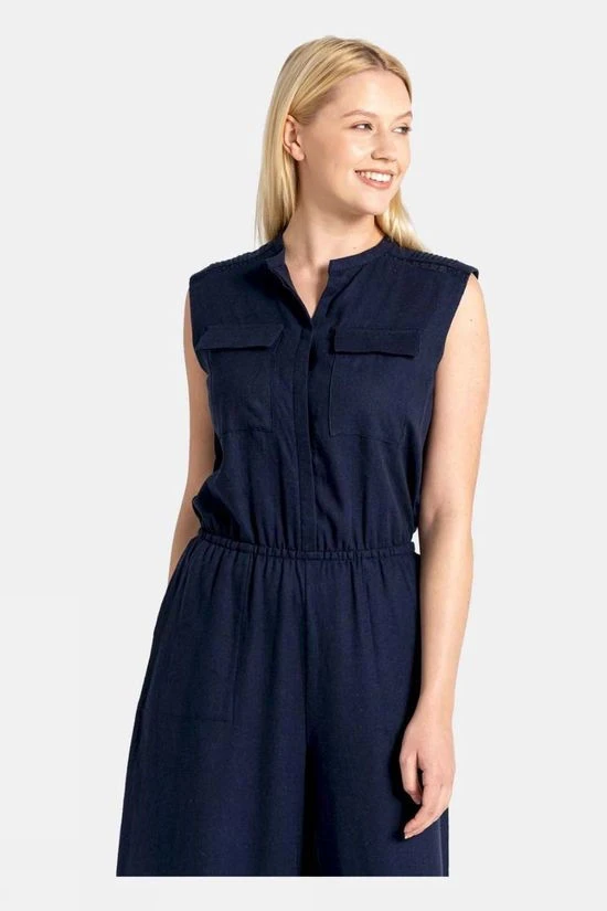 Stylish travel jumpsuit from Craghoppers. The classic striped linen-and-cotton twill is cool and comfortable, with extra protection in hot-climate conditions thanks to the naturally derived NosiBotanical anti-insect treatment (effective for up to 25 washes). Maxima showcases elegant sleeveless styling with lace trim and pintuck detail.