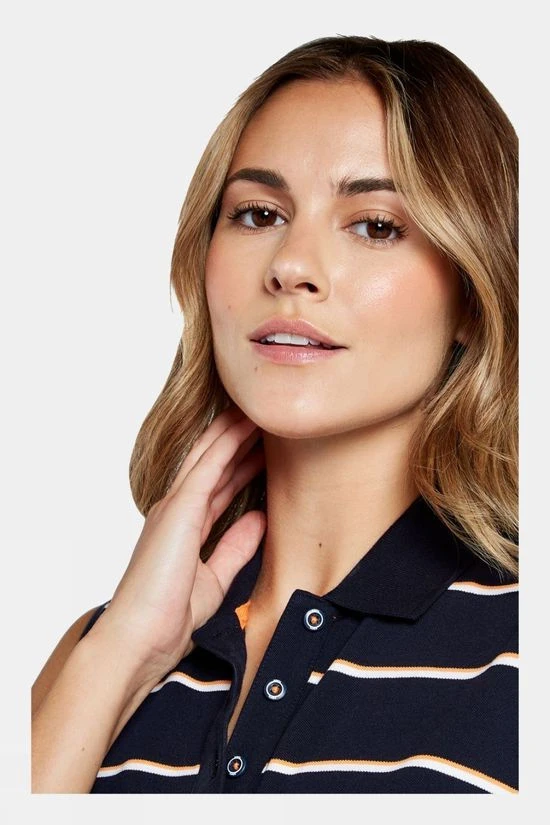 The Dubarry Women’s sleeveless Pebbles Dress is a polo shirt inspired piece created for those long days on and off-deck. Made from a hand-soft cotton blend with UPF 40+ sun protection, this spring and summer dress features a four button placket with two-tone branded buttons, on-seam zippered pockets, and a form fitting, feminine silhouette for classic beach style.