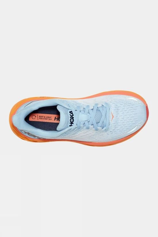 Fifteen percent lighter than the previous iteration, this next-gen design is crafted with a breathable mesh upper, ultra-plush tongue and advanced pull tab. Equipped with Hoka’s extended crash pad at the heel and increased rubber coverage for durability, the Clifton 8 is the ultimate everyday trainer.