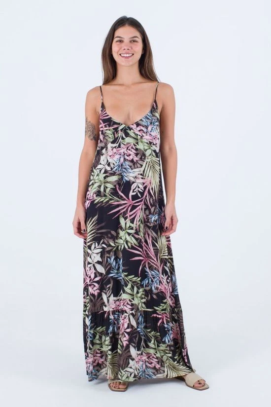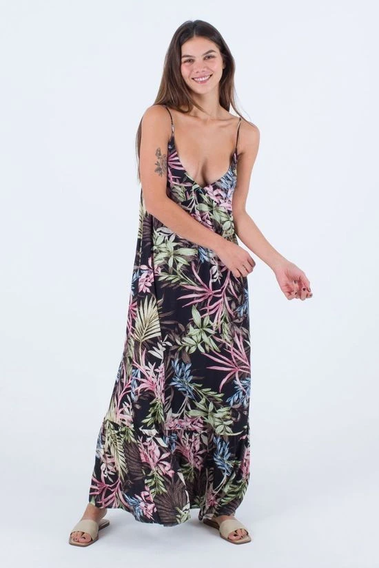 The Summer Palm Ruffle Maxi Dress is a stylish fashion companion for your summer adventures. This V neck maxi dress features a shirred flowy hem panel and a stunning floral print for ultimate casual elegance. Pair with your favourite sandals for a chic city look.