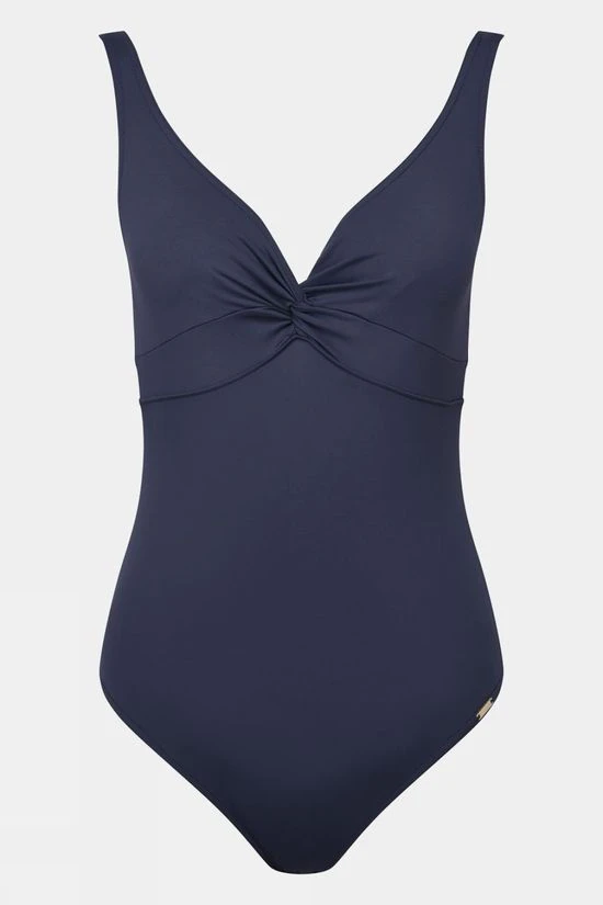 The Women’s Nancie Pavillon is a one-piece swimsuit from the Livia. The chest lining in form of a boned bra and the cups with hidden underwire hug the breasts perfectly for a perfect round curve and excellent support. This swimsuit has a deep V neckline and twisted effect on the chest that will enhance it to add femininity. Its high cut and plunging back reveal the skin with charm for a perfect tan, while its elasticated wide strap provides comfort and stylish support. A