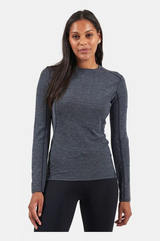 The Womens Primino 140 Long Sleeve T-Shirt from Montane blends the remarkable properties of Merino wool and Primaloft, making this a baselayer designed for active use in cold conditions. Merino wool draws vapour sweat away from the body whilst Primaloft yarns wick liquid sweat across the outer surface, allowing it to dry quickly.