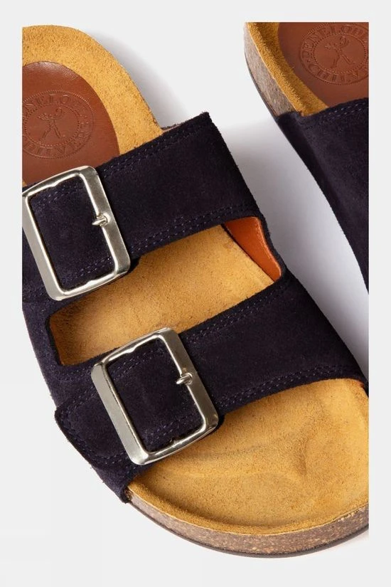 These Pool Slides in suede are set to become your new best friends this season, in two of our most wearable colours, navy with nickel hardware and peat with antique gold. Ideal for everyday wear and travel. These stylish and practical slides are designed anatomically with moulded cork soles and adjustable buckles for the perfect fit.