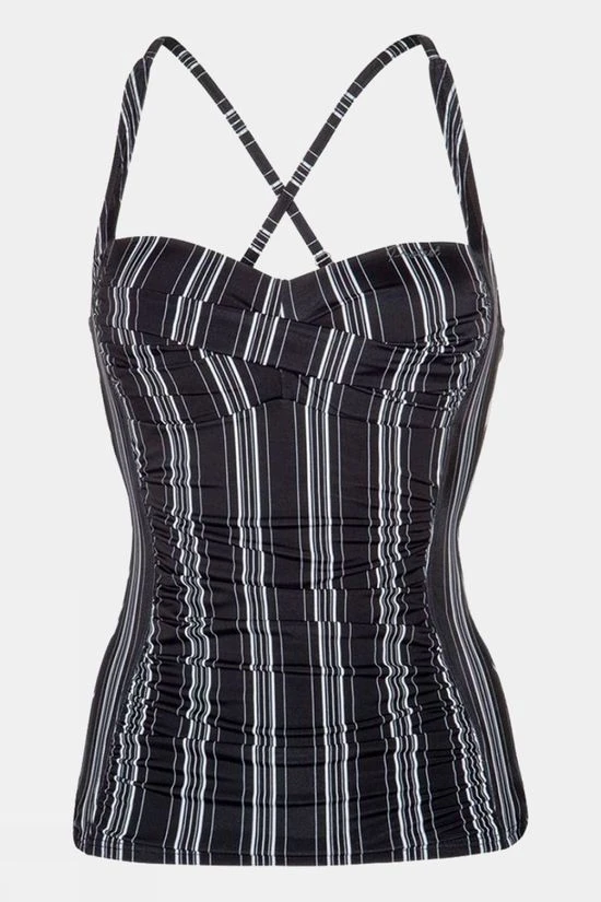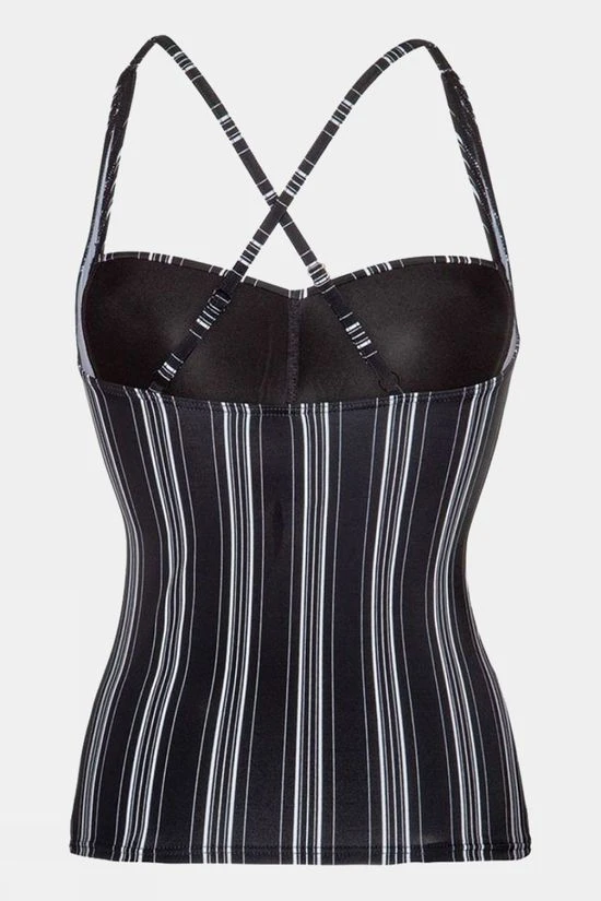 Meet the MM Femme 20 C cup tankini top by Protest. This great beach top provides coverage with a fun design. Printed with a fantastic all over design, the fabric of this top is gathered along the front panel and wraps across the chest. The fabric is also PFC-free in an effort to reduce the use of this chemical and thereby it’s harm to the environment. The straps cross at the back and can be adjusted to get the perfect fit. There are built-in foam cups for added support. Have fun playing with your look in the MM Femme 20 C cup by Protest.