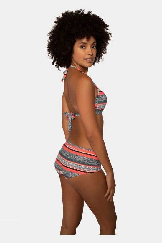 The Protest Goa 20 bikini top C-Cup is from the Protest Mix & Match collection. The top features a colourful print. The halter straps are tied at the nape of the neck and on the back. Experiment with different ways to wear the piece using the multiway straps and discover how a small change can alter the whole look. The moulded and push-up cups allow you to wear this top with comfort. Pair this bikini top with one of the bottoms from the Protest Mix & Match collection