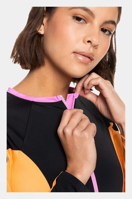 The Roxy Active Zipped Rashguard is a long-sleeved watersports essential. Made with VITA Xtra life lycra, and designed for ultimate comfort and style, this rashguard is a must-have for any water activity. Featuring a convenient front zipper, you can easily put on and take off this rashguard with ease. It also offers excellent sun protection, with a UPF rating of 50. This means that your skin will be protected from harmful UV rays while you enjoy your waterside adventures.