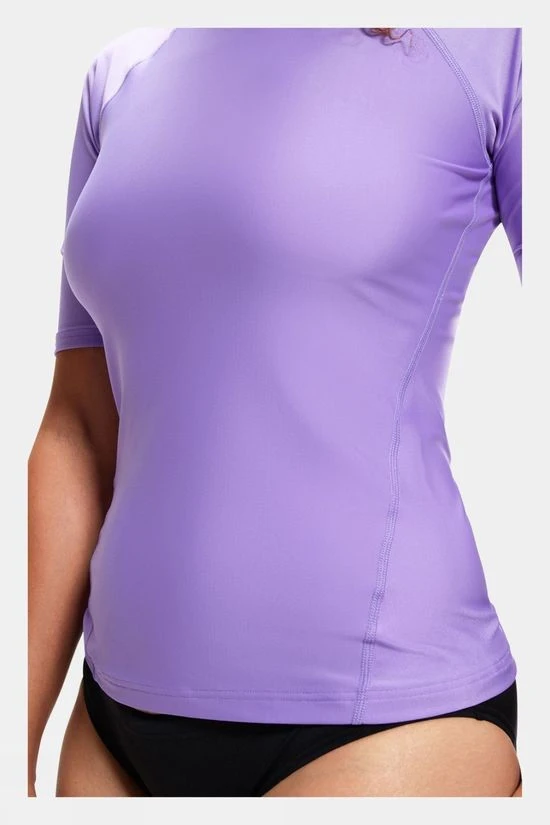 Stylish sun protection swimwear, come rain or shine. The Short Sleeve Rash Top from Speedo’s Essentials range has you covered. Snug-fitting in a pull-on style, it features flatlocked seams for a comfortable fit against the body and includes UPF 40+ sun protection – making it ideal for active beach days spent in and out of the water. Made using Speedo’s fully recycled Eco EnduraBrite fabric for superb colour performance, it offers higher chlorine resistance than other standard swimwear and fits like new for longer thanks to Creora HighClo.