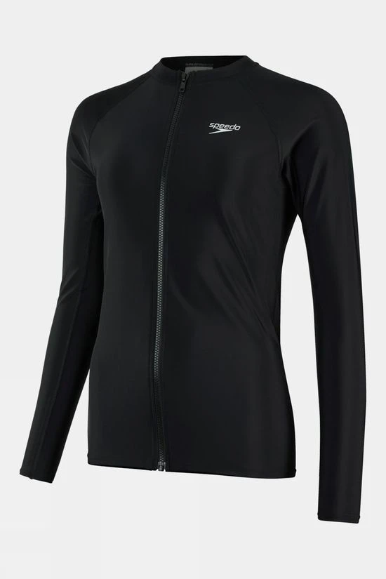Stylish sun protection swimwear made to last. Come rain or shine, the snug-fit Zip Front Rash Top from Speedo is part of their Essentials range. With long sleeves and UPF 40+ sun protection, it’s ideal for active beach days spent in and out of the water, and includes a zip-up front for easy changing. Fully recycled and made using Speedo’s Eco EnduraBrite fabric for superb colour performance, this rash top offers a higher chlorine resistance than standard swimwear fabrics, and fits like new for longer with Creora HighClo.