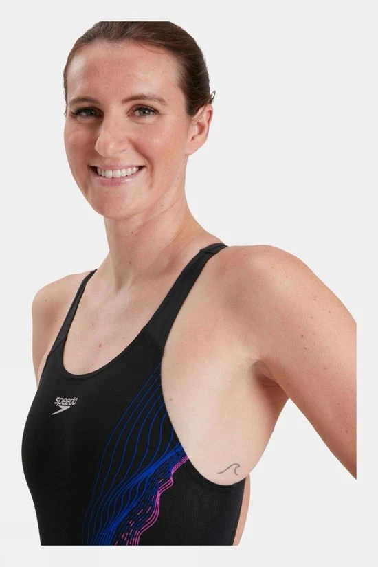 Express yourself as your power through your swim set wearing this sophisticated printed Recordbreaker with high energy colour pops created from a paint splatter-effect. Ideal for drills and sets, the Speedo Placement Recordbreaker teams a medium leg with an open back and straps that sit between the shoulder blades for improved freedom of movement. Fully front lined for comfort and modesty in and out of the water. Made to withstand daily swim sessions, the quick-drying and 100% chlorine resistant Endurance+ fabric helps colours stay bright for longer too.